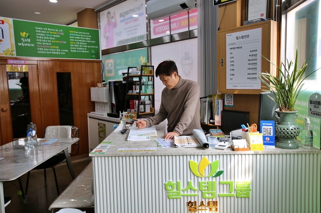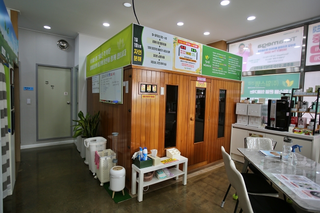 파크골프화,화장품류,샴푸,단백질 등 전시 모습입니다.